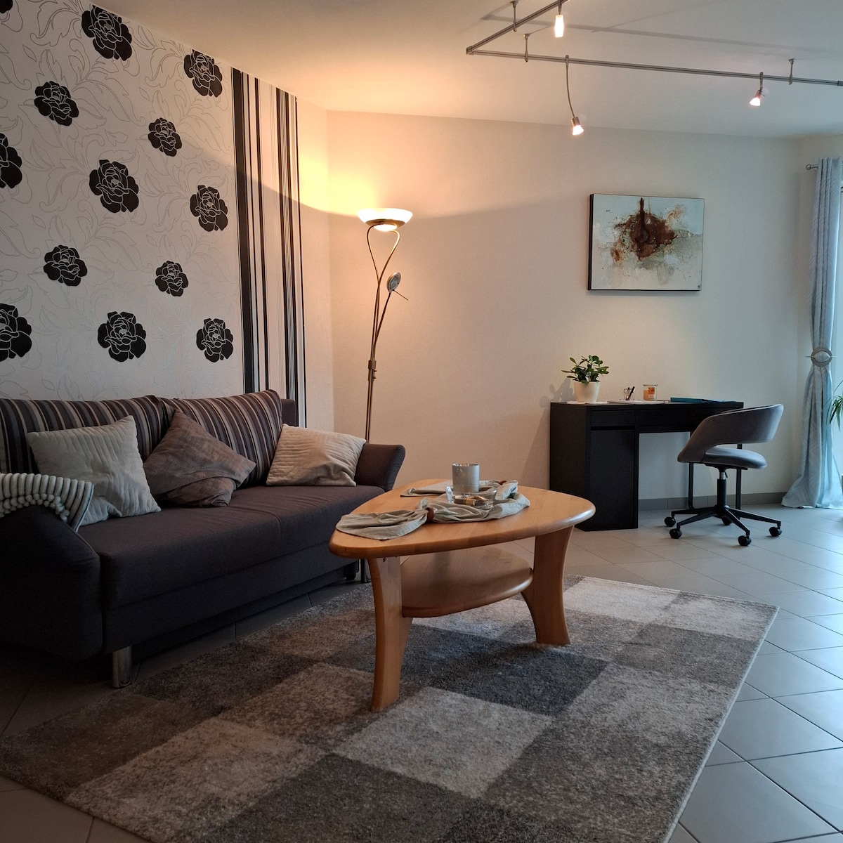 Elegante casa de huéspedes pequeña de 1 habitación con aire acondicionado en el verde, junto a la vía férrea Trier - Koblenz y justo al lado del área de seguimiento y recreación Meulenwald. A Trier en coche: 18 min (también en autobús y tren). El río Mosel se encuentra en el camino a Trier. Aeródromo deportivo, campo de golf cercano. A 10 km del lago recreativoTriolage (deportes acuáticos). Se puede acercar en tren (pide el traslado). Ruta ciclista justo delante de.