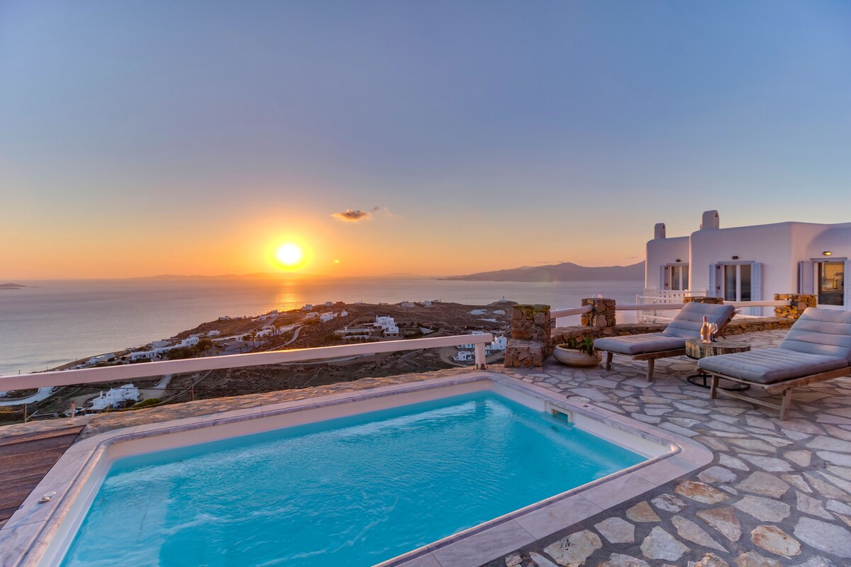 Villa Aegean Soul es una hermosa villa, con increíbles vistas panorámicas y al atardecer del mar Egeo y las islas vecinas. La villa ofrece una amplia zona de piscina y es un verdadero paraíso, mezclado con una arquitectura cicládica única. Se completó una renovación completa en 2025, lo que hace que la villa sea acogedora y lujosa, y que pueda alojar cómodamente a 10 personas. Ofrece amplias zonas y una gran piscina infinita con una maravillosa bañera de hidromasaje. Una gran opción para amigos, familias numerosas, ceremonias de boda y fiestas de cumpleaños.