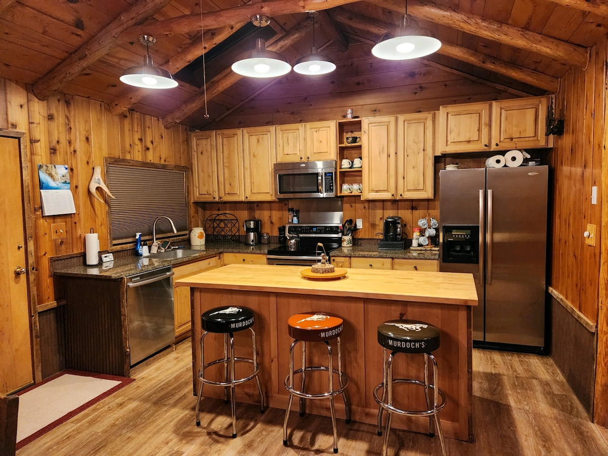 Cabaña de madera privada de lujo con un dormitorio (queen), sofá cama queen, baño completo (ducha), calefacción por suelo radiante, ventiladores de techo, hermosos muebles rústicos y una pequeña cocina. Esta hermosa cabaña se encuentra en 10 acres prístinos que bordean Rock Creek (pesca con mosca principal) y la montaña de esquí Red Lodge está a solo minutos. Disfruta de acampar y hacer senderismo en verano y conduce por el pintoresco puerto Beartooth para llegar al Parque Nacional Yellowstone. ¡Este es realmente un lugar único para pasar con amigos y familiares!