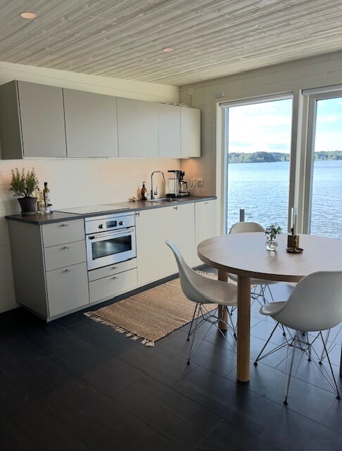 Estudio moderno renovado con vistas espectaculares, gran terraza privada y acceso al muelle que compartes con nosotros (y si tenemos huéspedes en nuestra otra casa de huéspedes). Situado justo donde comienza el archipiélago de Estocolmo, a un corto trayecto en autobús del centro de la ciudad de Estocolmo. ¡Senderismo, natación y vida urbana!