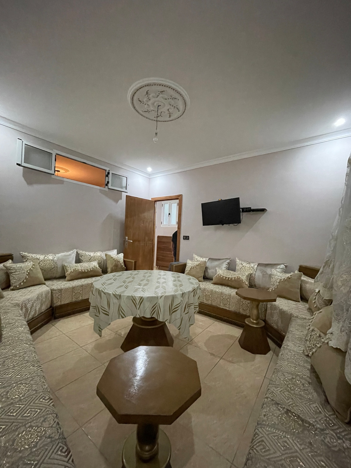 ¡Bienvenidos a su hogar familiar en Nador! Este espacioso apartamento ha sido diseñado pensando en la comodidad, espacio y privacidad. Ideal para familias o grupos de hasta 5 personas, ofrece un ambiente cálido, moderno y totalmente equipado para que disfrutes de tu estancia al máximo. Ubicación privilegiada: • A solo 7 minutos en coche de la hermosa laguna de Marchica (acceso fácil en taxi) • A 10 minutos caminando del tradicional zoco Oulad Mimoun. • A 5 minutos a pie de la Clinique Al Wahda.