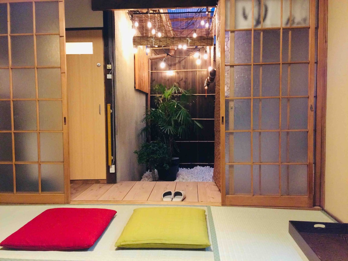 Estimados huéspedes, hoy.😃 Esta habitación tiene un pequeño [jardín tsubo] para los huéspedes frente al dormitorio.Y el piso del dormitorio es arte tradicional japonés [tatami].Las alfombras de tatami están tejidas con plantas, por lo que son cómodas para los pies descalzos.Y hay 🚉 dos estaciones de tren privadas cerca de la posada [Osaka, Nara, Santuario Inari, Templo Kiyomizu, Mercado Nishiki son fácilmente accesibles] 🏯 Castillo Momoyama, ⛩️ Santuarios y templos, 🏥 Hospitales, 🏪 Tiendas de conveniencia, 🥦 Supermercados y 🍣 Restaurantes.¡Zona céntrica muy conveniente, segura y limpia!¡Tanto para japoneses como para extranjeros, experimenta la cultura japonesa del tatami cuando viajes o trabajes!🙋 🌿Recompensas🌿 ○Depósito de equipaje.Cupón de 1000 yenes por ○ noches consecutivas.○ Alquiler de bicicletas.Los cupones se pueden utilizar en el café Kyoto-machiya adjunto al alojamiento de Airbnb.Además, un gato está durmiendo en la terraza de un café con un plátano 🌴. Sería bueno conocerlo. 🐱 Nuestras instalaciones no son tan caras y lujosas como un hotel, pero tenemos todo lo que necesitas para tu estancia.Y Tamami y yo estamos en el café y la oficina contiguos para ayudar a los huéspedes, ¡así que estarás completamente protegido y apoyado durante tu estancia!🙋 Puedes quedarte con tranquilidad como si estuvieras en casa. Quedamos a la espera de tu consulta y reserva. 🐬