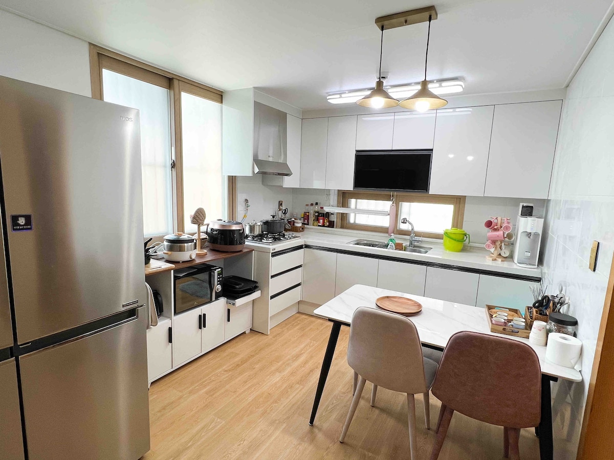 🌱Evento de revisión de la gran inauguración🌱 Un alojamiento completamente nuevo que abrió sus puertas en marzo de 2026, Estamos organizando un evento abierto. 🩵 1. Si dejas una buena reseña, Nos haremos cargo del costo del estacionamiento el día de tu estancia.🩵 (¡Avísanos al momento de hacer la reservación si vas a participar!) 2.❤️🔥Se proporciona un enlace a la lista de restaurantes y cafeterías recomendados por el anfitrión❤️🔥 ✨ Haengnidan-gil, centro principal, a 1 segundo de Ohara Lounge ✨ 🌞¡Te damos la bienvenida al Oh (Mid-Summer) Lounge! A (tarde) + S (verano) Ohara Lounge, que significa “verano”, Tómate un descanso de la rutina diaria y, bajo la cálida luz del sol, Hemos creado un espacio donde puedes relajarte cómodamente. El alojamiento se encuentra a solo 1 segundo del centro de Haengnidan-gil. Se ubica en la calle principal, con buena seguridad incluso por la noche. Tendrás acceso privado a todo el piso. 🏡 Un espacio espacioso y cómodo en una planta alta Ideal para parejas, amigos y También para viajes en grupo con la familia Te sentirás cómodo.