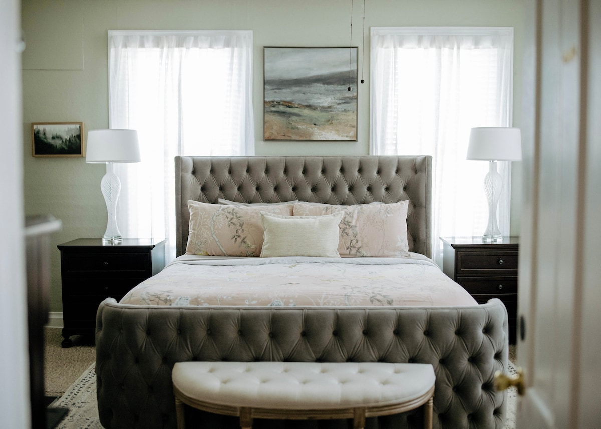 Habitación verde en Love Lane B&B, a pie de Main St.
