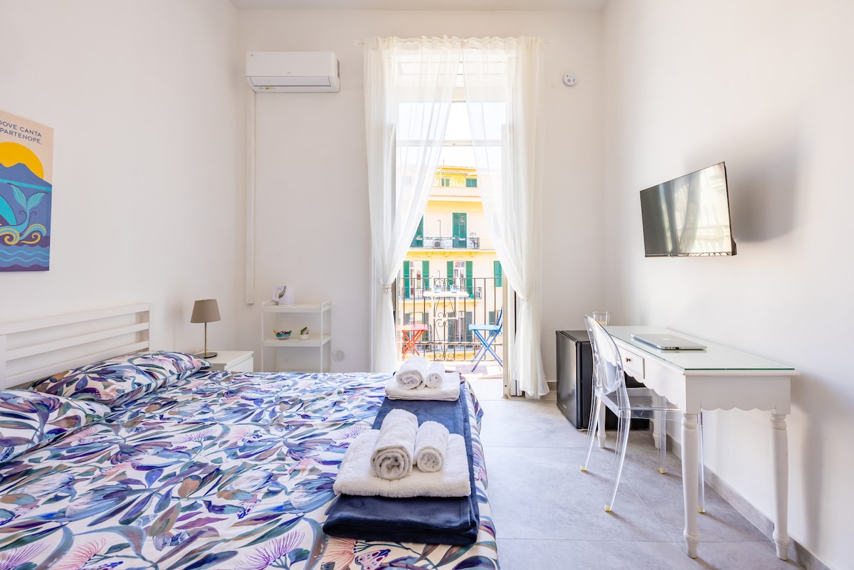 Con questo alloggio in centro, la tua famiglia sarà vicina a tutto. La camera tripla con bagno privato, ideale per ospitare fino a tre persone. La camera, di 18 m², è arredata con un letto matrimoniale alla francese e un letto singolo, garantendo comfort e spazio adeguato per gli ospiti. La posizione strategica, permette agli ospiti di esplorare facilmente le attrazioni principali di Napoli.