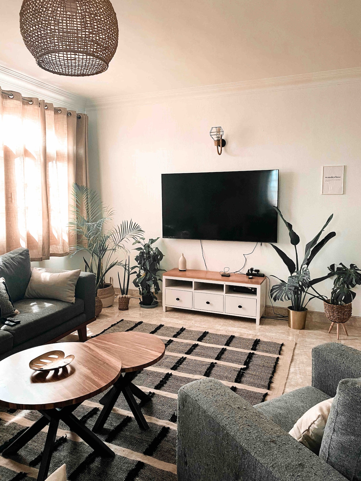 r شقة مشتركة مع الزوجان Super cozy and stylish boho bedroom with a king size bed, an AC, a big wardrobe and a small balcony. You will have a private bathroom. Everything was designed and decorated with love. The room is in a very spacious, well equipped and brand new renovated apartment for free spirits and boho lovers. It’s located in a very safe, green and foreigner friendly area in Maadi Degla close to literally everything you will need! We and our 3 cats would love to host you soon!