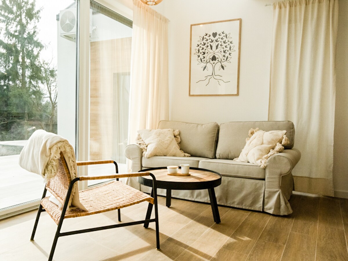 Hermoso apartamento en un edificio nuevo a 800 metros del lago Ukiel y City Beach. Diseñada con cuidado para garantizar un alojamiento único. Hay una cocina (nevera, lavavajillas, vitrocerámica, hervidor de agua, máquina de cápsulas). Secador de pelo, plancha, lavadora. Televisión con Smart TV, que te permite utilizar Netflix. Bicicletas para los huéspedes. Junto a rutas de senderismo y ciclismo, puerto deportivo, alquiler de equipos de agua, parques infantiles, bicicletas, parque acuático, parque infantil, bares, restaurantes y tiendas. Se tarda 5 minutos en llegar al centro de la ciudad.