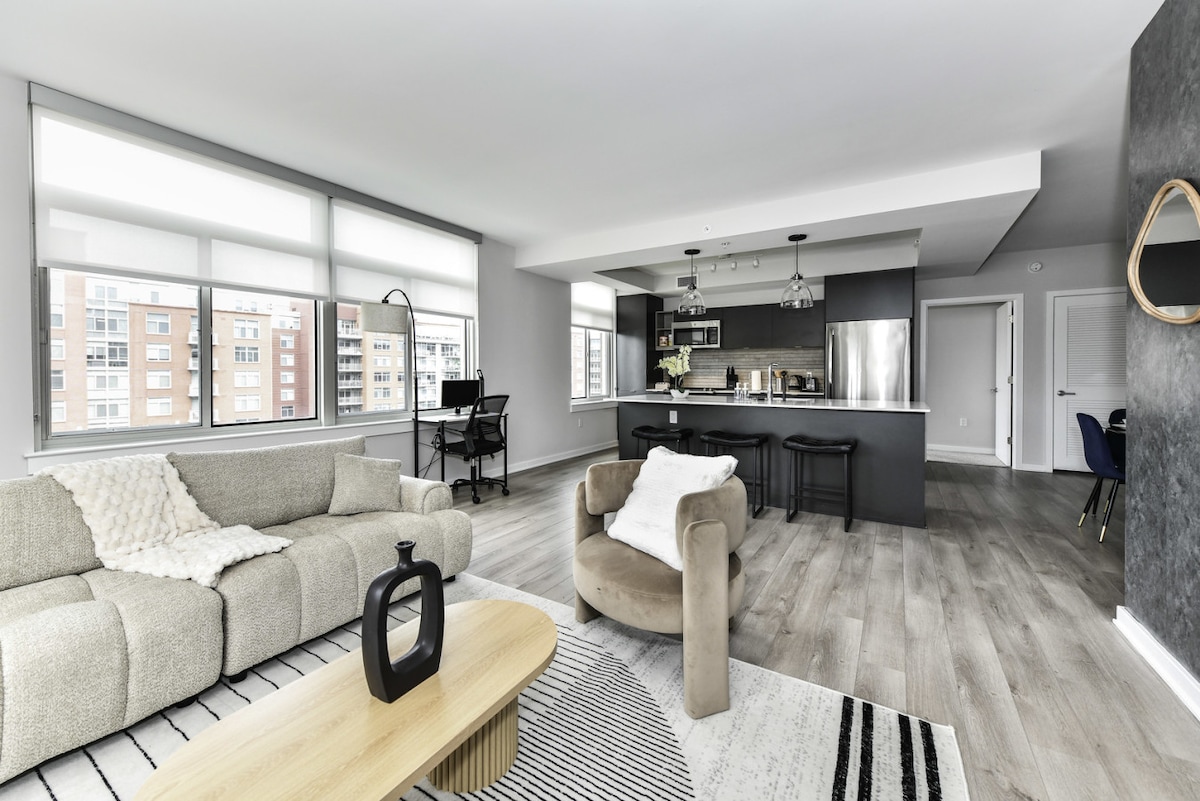Alójate en un departamento de lujo en uno de los vecindarios más transitables de DC, entre el West End y Georgetown en Pennsylvania Ave. Camina hasta el National Mall, los museos Smithsonian, el histórico Georgetown, los mejores restaurantes y la vida nocturna. Renovado en 2016, este elegante espacio ofrece comodidades modernas, además de acceso gratuito a Balance Gym Foggy Bottom y Capitol Hill. Disfruta de vistas frente al mar, parques pintorescos y la vibrante cultura de DC, ¡todo a pocos minutos!