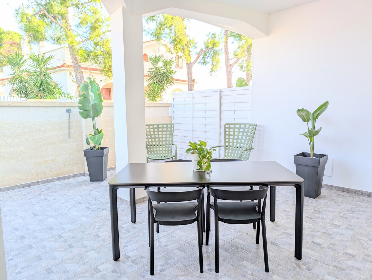 Casa a 200 metros de la zona de mar, pero con un hermoso mar si vamos a la izquierda unos 350 m, solo encuentras playa. Apartamento amueblado que incluye sábanas y toallas con cocina americana afuera debajo de la terraza. Se encuentra dentro de una valla donde hay otras 3 casas distantes una de la otra,cada una con su propia zona privada es porche. En vista de las 3 casas, hay un gran jardín y patio para aparcar, ideal para tomar el sol o cenar . Se puede utilizar para todas las casas. Parrilla barbacoa disponible para todos. En el aire de los alrededores encontrarás todo lo que necesitas. Tienda de comestibles a 150 metros, carnicería, bar, tienda de comestibles, tienda de tabaco y restaurantes, etc. A pocos kilómetros de San Pietro en Bevagna , Torre Colimena. A unos 50 km de Lecce , Gallipoli y a 23 km de Porto Cesareo. ¡Ideal para parejas!