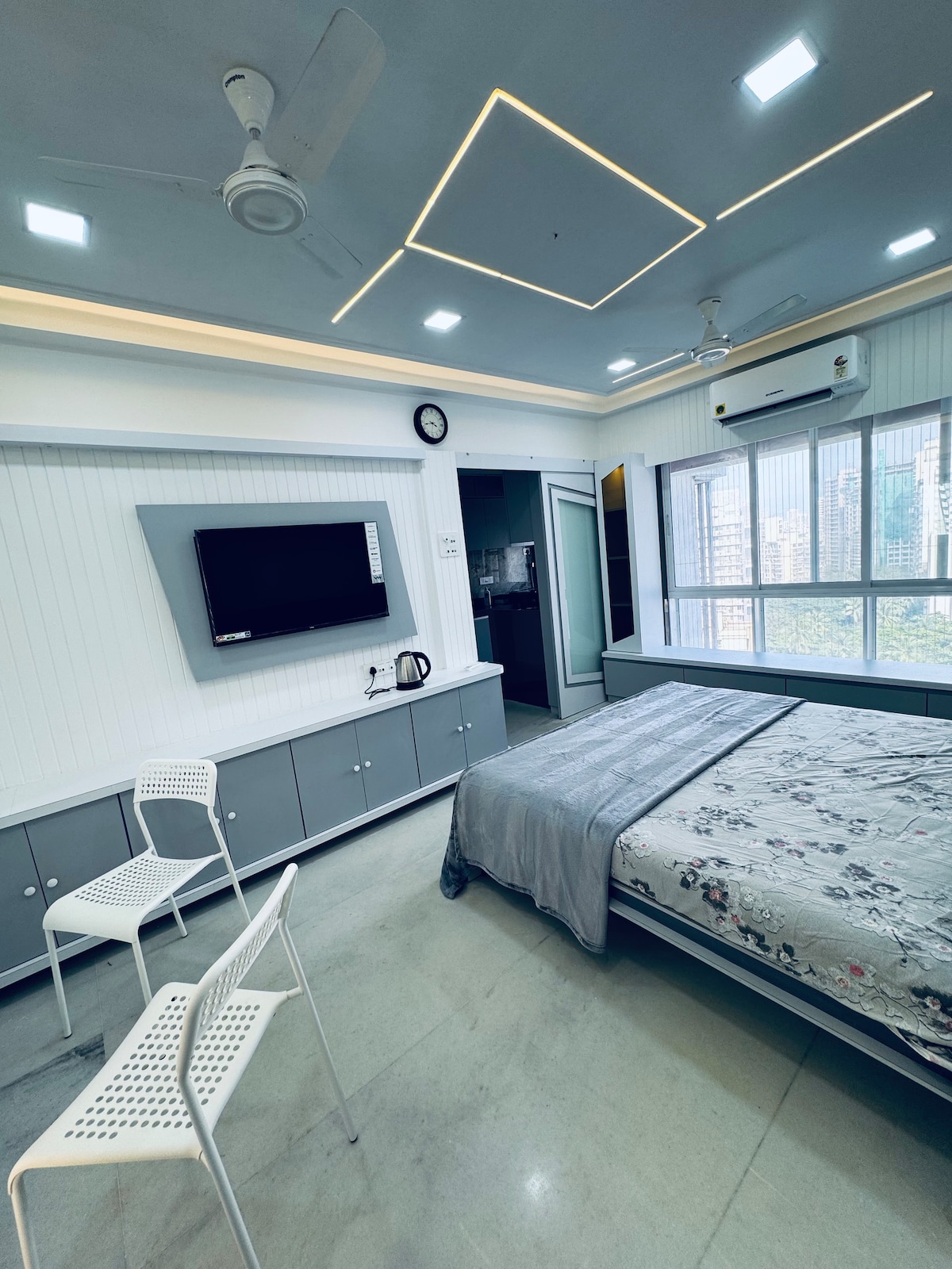 Descubra Coastline Studio°21, un elegante apartamento tipo estudio boutique diseñado para el viajero moderno en el corazón de Hiranandani, la urbanización más exclusiva de Thane. Perfecto para profesionales que viajan solos, parejas y escapadas de fin de semana: · Estudio totalmente equipado con una decoración cuidadosamente seleccionada · Wifi de alta velocidad · Aire acondicionado · Televisión inteligente con streaming · Cocina totalmente equipada · Check-in sin restricción de horario en cualquier momento · A poca distancia a pie del centro comercial TheWalk y de los restaurantes Hiranandani · A minutos de la autopista Eastern Express y la estación de Thane