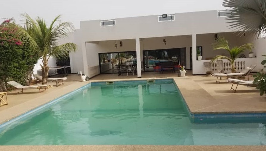 Amplia villa de 3 habitaciones con decoración tradicional y piscina privada. En las afueras de la pequeña ciudad comercial de Mboro, situada a 100 km al norte de la capital, Dakar, a unas 2 horas en auto. Hermosa tranquilidad en medio de las aves y los jardines tropicales, a solo 3 km del pequeño pueblo pesquero de Mboro Sur Mer. Ideal para una escapada tranquila. Mercado de Mboro, situado a 100 km al norte de la capital, Dakar, a unas 2 horas de Dakar. zona de barbacoa