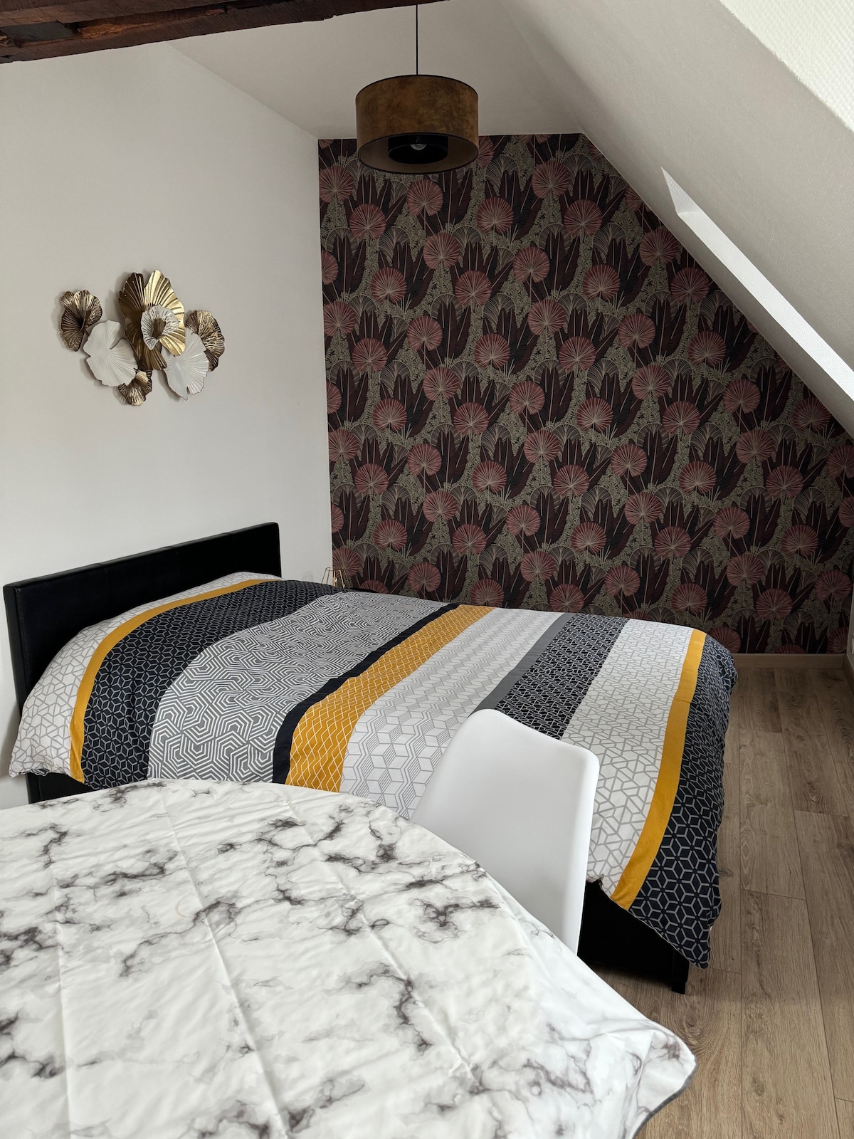 Au coeur de la campagne Mayennaise, venez découvrir cet appartement indépendant de deux pièces. Vous aurez pour vous un grand salon/salle à manger, une cuisine équipée, et à l'étage, une chambre à coucher avec un lit double et un lit simple, une salle d'eau (avec WC indépendants). Le logement est équipé du Wifi . Aucune maison dans le voisinage direct, le logement est donc très calme. Les propriétaires logent dans la partie droite de la maison.