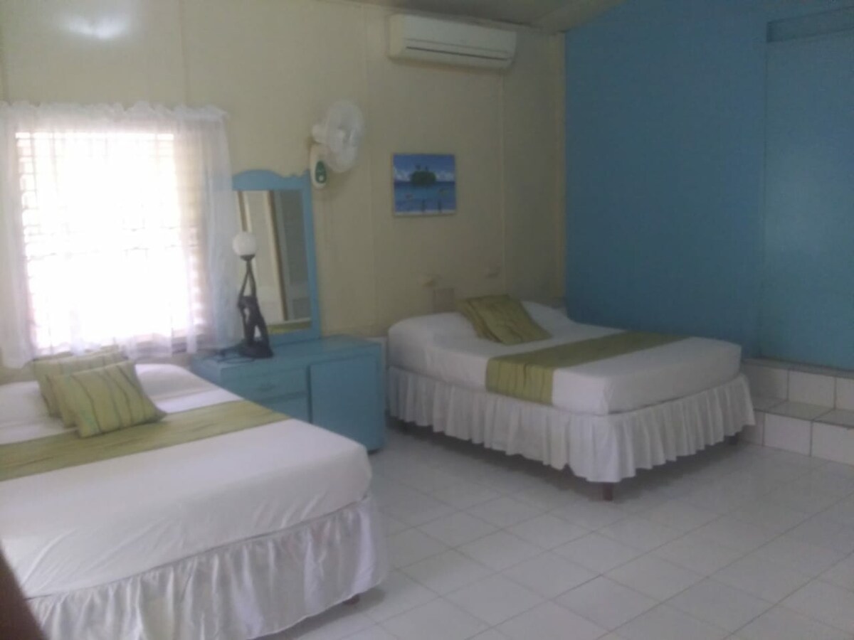 Amplia casa independiente de 2 dormitorios ubicada en un jardín tropical con una gran terraza. 2 camas de matrimonio en el dormitorio principal, en estilo tradicional A/C. Además de 2 literas para adultos en el segundo, enfriado por ventilador. Baño privado, sala de estar/ cocina. Descuento solo para ventiladores. Flujo WiFi 150 mbps y televisión por cable