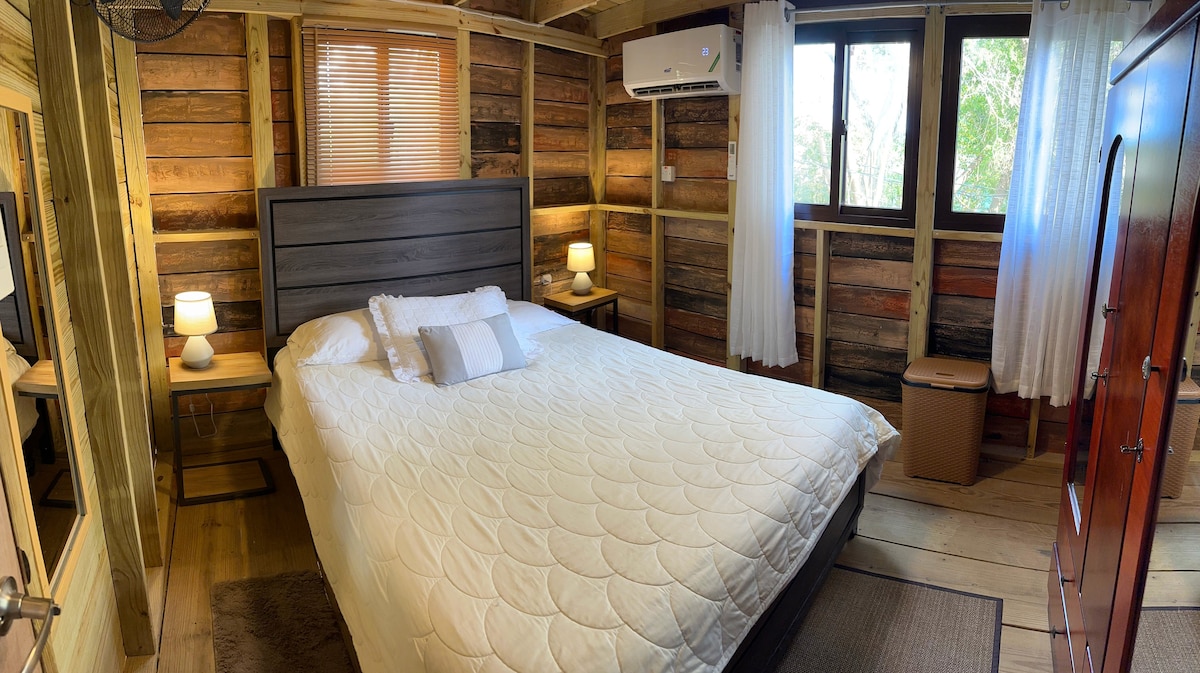 ¡Escápate a nuestra increíble casa del árbol en Negril! Ubicada en la naturaleza con impresionantes vistas al mar, esta joya de madera y paja cuenta con un diseño de planta abierta, cocina, sala de estar y comedor. El dormitorio principal cuenta con una cama doble y baño privado, mientras que el loft ofrece dos camas individuales. Comienza el día en el balcón, disfruta de la ducha al aire libre y relájate en las hamacas. Sumérgete en la naturaleza, explora restaurantes y bares cercanos y disfruta del salto de acantilados en el Caribe. ¡Una escapada inolvidable!