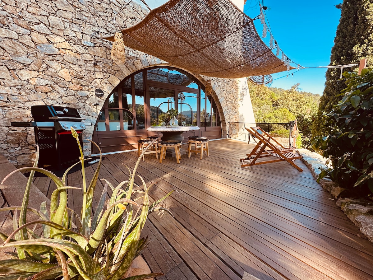 Este alojamiento muestra un estilo decididamente único por su entorno, su tranquilidad o su excepcional zona de piscina. A diez minutos de la playa y de los centros turísticos costeros del var, esta propiedad le satisfará con su limpieza, su salón muy acogedor y por su decoración original y moderna. Esta villa se beneficia de 3 dormitorios, uno de ellos principal en el piso de arriba. Posibilidad de dar un paseo a caballo para una persona a la vez con reserva adicional. Posibilidad de calentar la piscina, y hamman además.