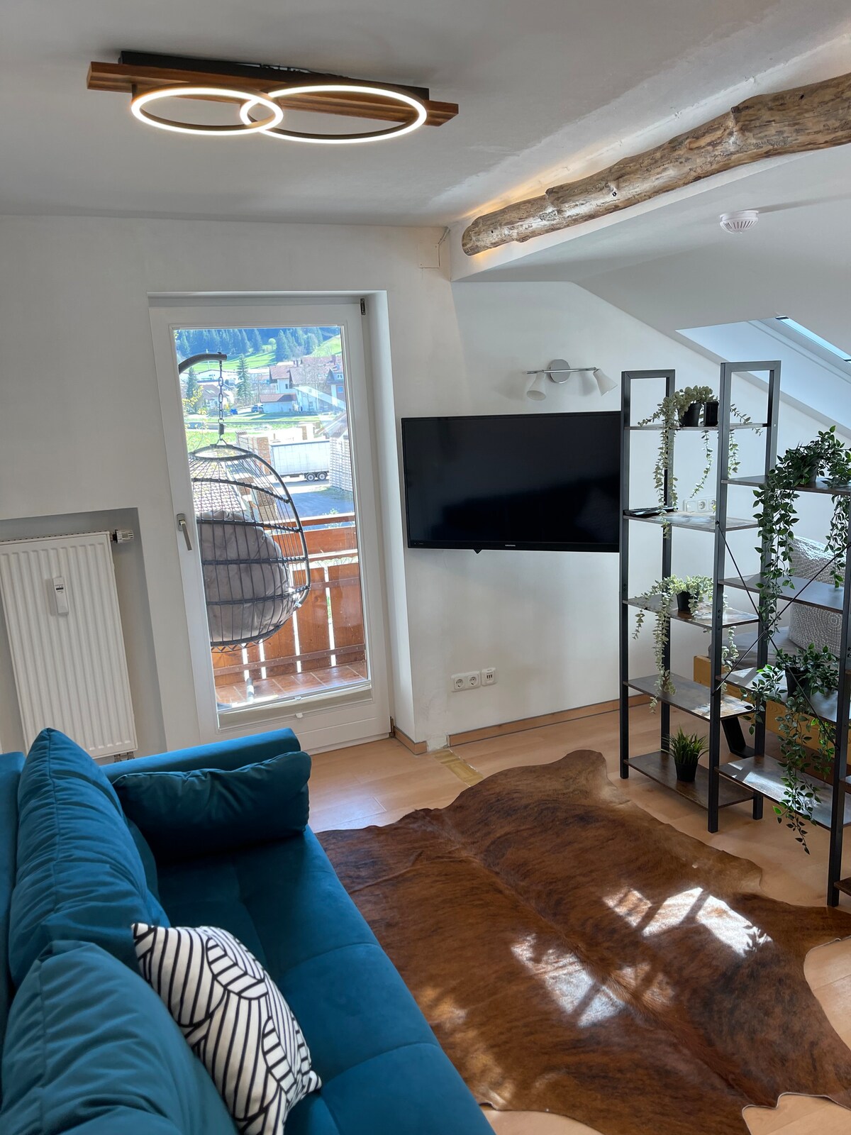 Our bright, charming apartment in Pfronten accommodates up to 5 guests and offers a spectacular view over the rooftops of Pfronten and the Allgäu mountains. Ideally located for exploring Neuschwanstein Castle as well as numerous ski and hiking areas. Start your day with breakfast on the balcony while enjoying the panoramic mountain views – the perfect retreat for nature lovers and anyone seeking relaxation.