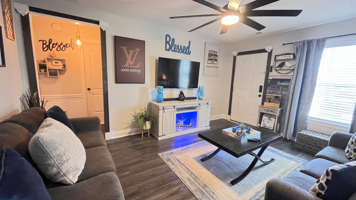 Adorable casa de campo renovada de 1953 ubicada en el corazón de New Bern. Camina hasta la tienda de comestibles. A 1,4 millas del centro comercial Twin Rivers y Wal Mart. A dos millas del centro histórico y a media milla del Centro Médico Regional de Craven. Restaurantes cercanos. Barrio transitable. La sala de estar tiene un nuevo televisor inteligente, wifi y está recién amueblado. La casa cuenta con dos dormitorios, dos camas individuales y una queen con ropa de cama nueva y colchones nuevos. Bañera de baño con ducha y lavadora y secadora. Cocina con encimeras de granito e isla. La cocina tiene capacidad para cuatro personas con comida en la mesa. Keurig una taza de café, aperitivos para el desayuno, café, agua embotellada de cortesía. Todos los electrodomésticos nuevos. Se proporciona todo lo que necesitas para una estancia cómoda. Patio trasero vallado con estacionamiento en la entrada de la terraza para dos vehículos. El check-in es a las 3:00 p. m. Salida a las 11:00 a. m.