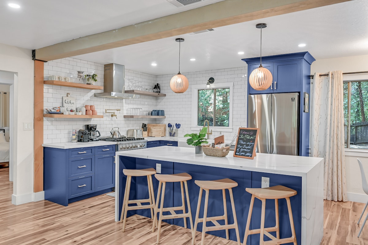 Acogedora cabaña rediseñada con vistas, jacuzzi y chimenea
