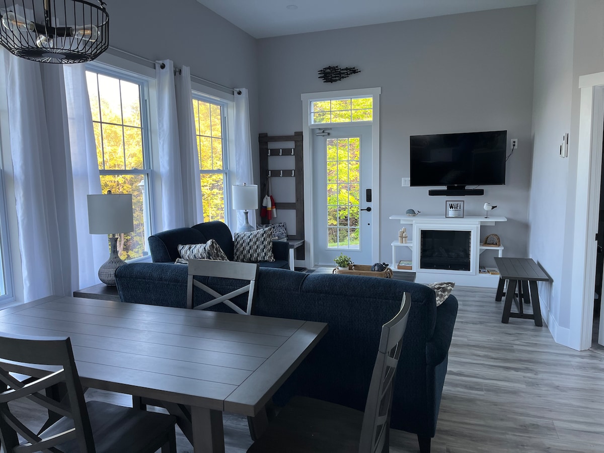 Relájate y desconecta en este alojamiento tranquilo y elegante. Ubicada en el bonito puerto de Hopeall, nuestra casa de huéspedes de nueva construcción ofrece una escapada tranquila y relajante con una relajante vista al mar. El espacio es de concepto abierto, con salón y comedor con una cocina totalmente equipada, chimenea eléctrica y terraza cubierta con barbacoa de propano. Trae tu kayak de mar o pequeña embarcación y zarpa desde nuestro embarcadero privado. A solo una hora de St. John's, a diez minutos de Dildo y a diez minutos del campo de golf Pitcher's Pond.