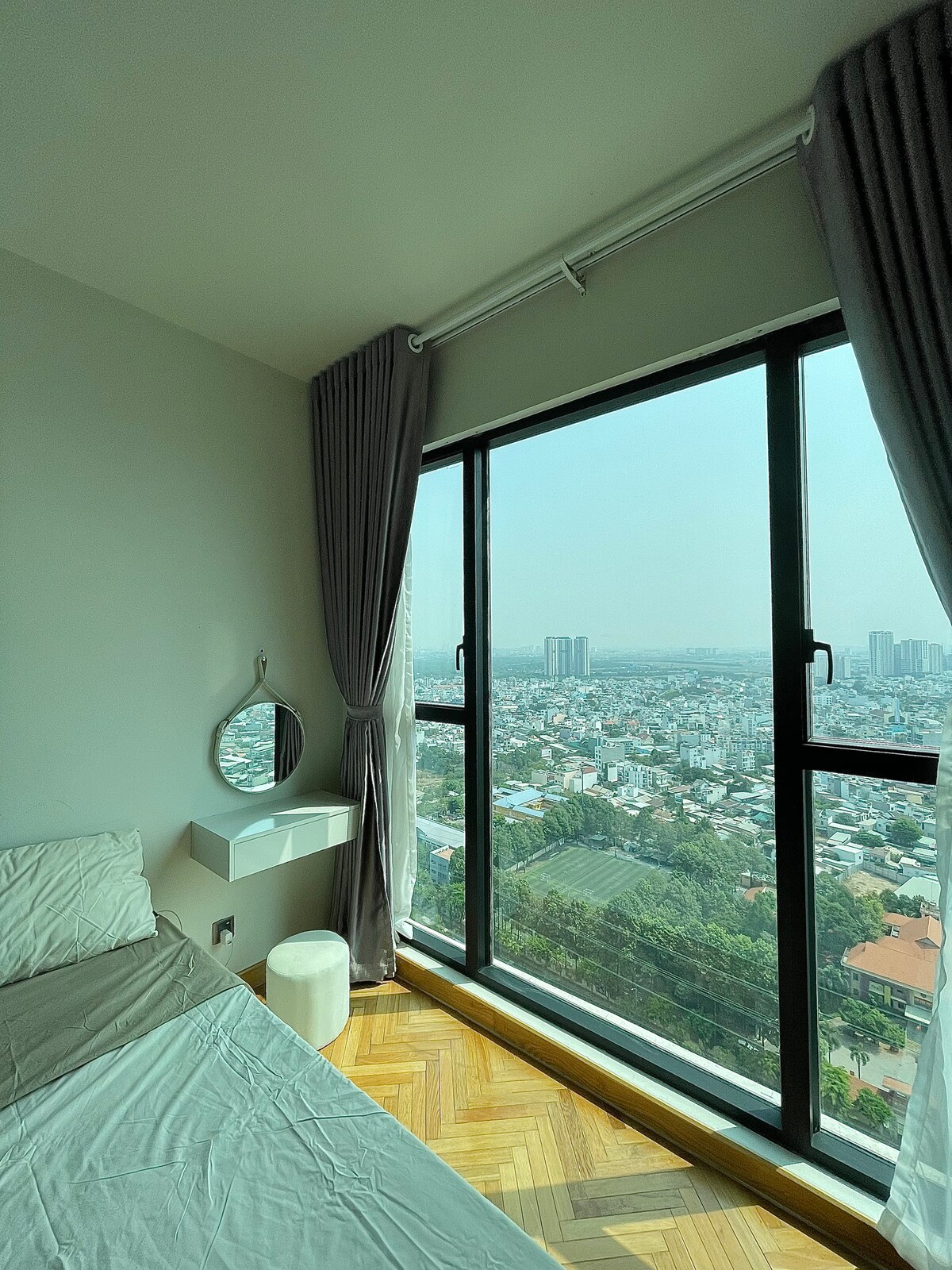 Bienvenido a nuestro moderno apartamento tipo estudio en el complejo Vista Verde en el distrito 2 de HCMc. Disfruta de una estancia lujosa y cómoda en este elegante espacio, equipado con todos los servicios que necesitas. Con una cómoda cama tamaño king, cocina totalmente equipada, un baño, este apartamento es perfecto para parejas o viajeros solitarios. Disfruta de las comodidades del edificio, como la piscina de estilo resort, el gimnasio y el área de juegos infantiles, y descubre las tiendas, restaurantes y opciones de entretenimiento cercanas.