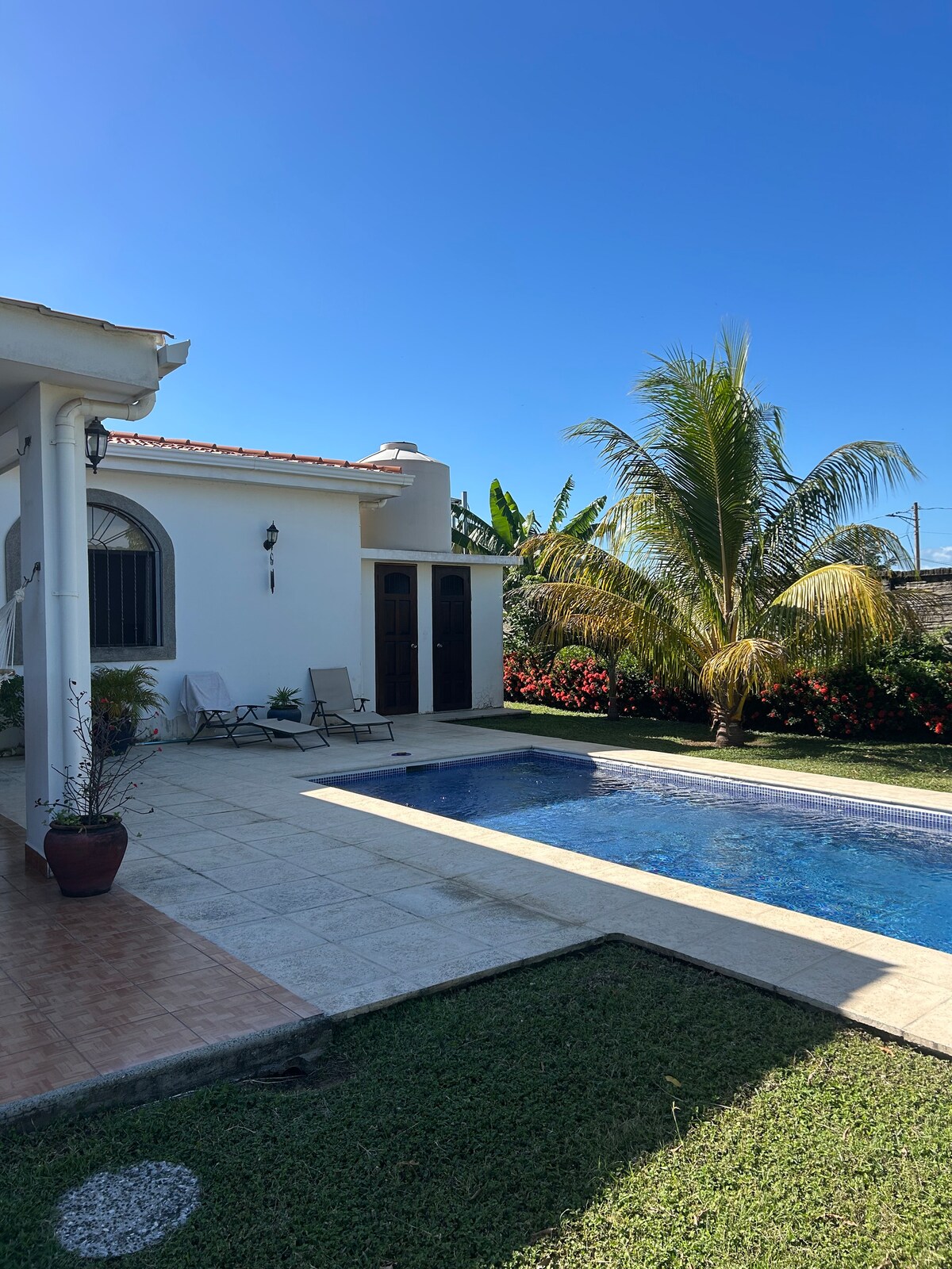 Esta casa de 3 dormitorios está a solo 2 minutos a pie de la famosa zona de surf, Playa Colorado. Este es el hogar perfecto para familias o surfistas, es espacioso, totalmente cerrado, privado y situado en una zona tranquila y agradable con piscina. La casa tiene un generador para que no te quedes sin electricidad durante un corte de energía. La velocidad de internet es de 15 Mbps, que es muy rápido aquí. Las olas de primera clase están a solo unos pasos y luego podrás recuperarte y retirarte en esta tranquila y cómoda casa con piscina y patio con jardín.
