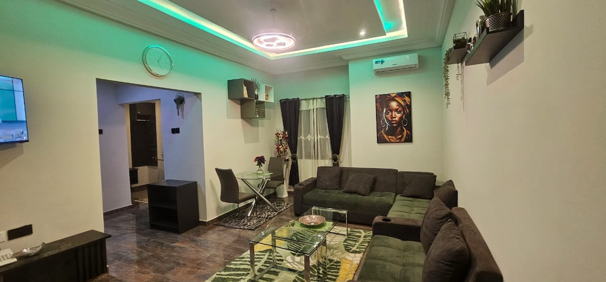 Disfruta de una estancia tranquila y cómoda en este acogedor departamento de un dormitorio con baño privado, sala de estar y dormitorio con aire acondicionado, cocina totalmente equipada, terraza privada, estacionamiento gratuito, televisores en ambas habitaciones y lavadora. Ubicado en un barrio tranquilo con fácil acceso a tiendas y transporte, el departamento es ideal para viajeros solos y parejas. Se incluye una asignación diaria de servicios públicos prepagados de GHS 30 y 6 GB de internet. Cualquier uso adicional es a expensas del huésped.