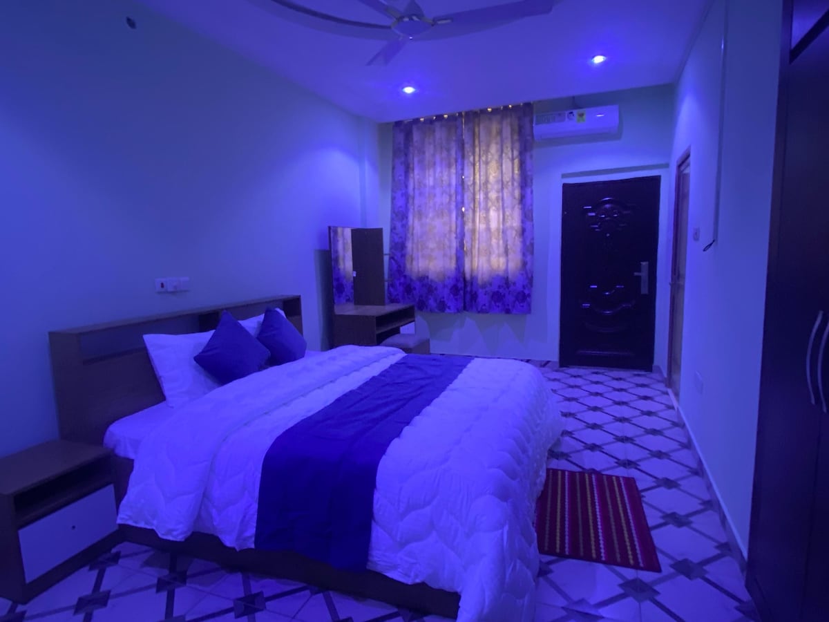 Disfruta de una estancia tranquila y cómoda en este acogedor departamento de un dormitorio con baño privado, sala de estar y dormitorio con aire acondicionado, cocina totalmente equipada, terraza privada, estacionamiento gratuito, televisores en ambas habitaciones y lavadora. Ubicado en un barrio tranquilo con fácil acceso a tiendas y transporte, el departamento es ideal para viajeros solos y parejas. Se incluye una asignación diaria de servicios públicos prepagados de GHS 30 y 6 GB de internet. Cualquier uso adicional es a expensas del huésped.