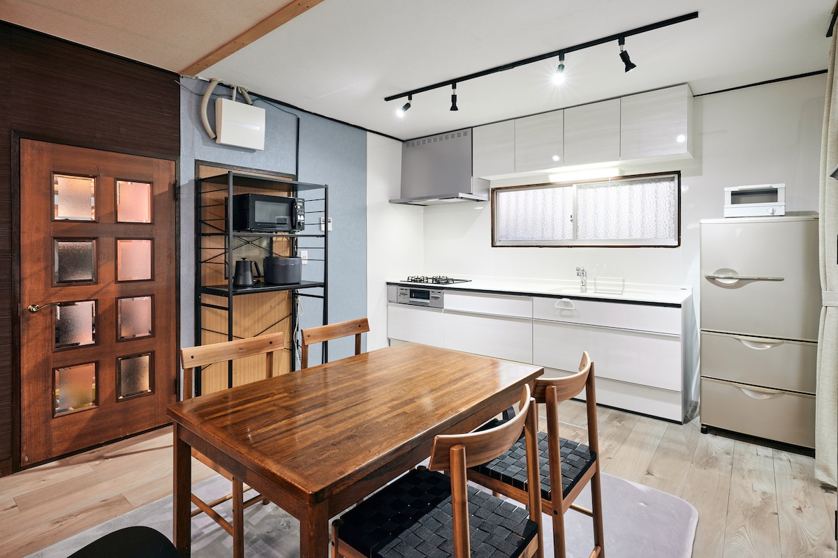 El apartamento está ubicado cerca de Shinjuku y Shibuya, diseñado por un arquitecto local. La casa contiene 1 dormitorio (1 cama tamaño queen y 1 cama doble) y la habitación japonesa puede colocar 1 futón tamaño doble por la noche (3 camas en total) y 1 baño con cocina completa y sala de estar. - A 8 minutos a pie de la estación de Kamikitazawa de la línea Keio (550 metros). - A 5 minutos a pie de una tienda de comestibles (300 metros). - A 6 minutos a pie del supermercado (450 metros). - Hay muchas tiendas de ramen famosas cerca.