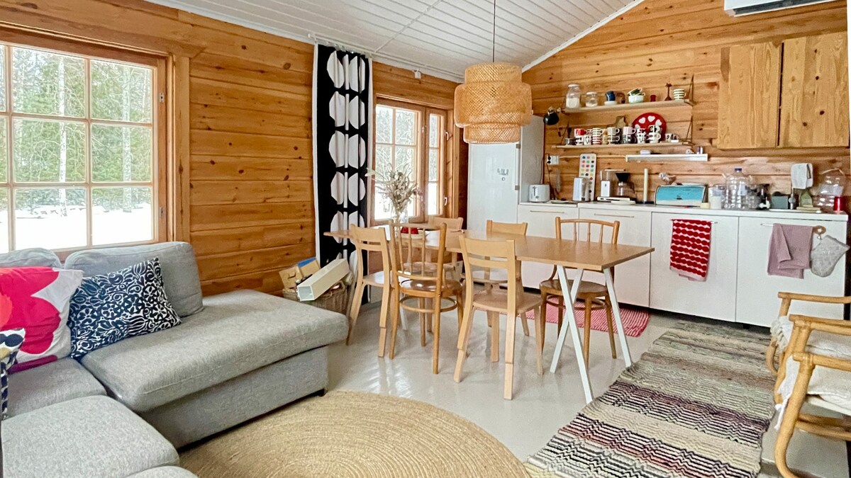 Nuestra casa de campo, que es para nuestro propio uso, es un excelente lugar para alojarse en el camino a Laponia, para unas minivacaciones o incluso para el teletrabajo. A lo largo de los años, la cabaña se ha ampliado para incluir 3 espacios separados para pasar la noche, y la sala de estar tiene un rincón de trabajo adecuado para el trabajo remoto. La cabaña se alquila “siéntete como en casa y limpia lo que ensucies”. Puedes elegir los edredones, almohadas, sábanas y toallas adecuados en el armario.