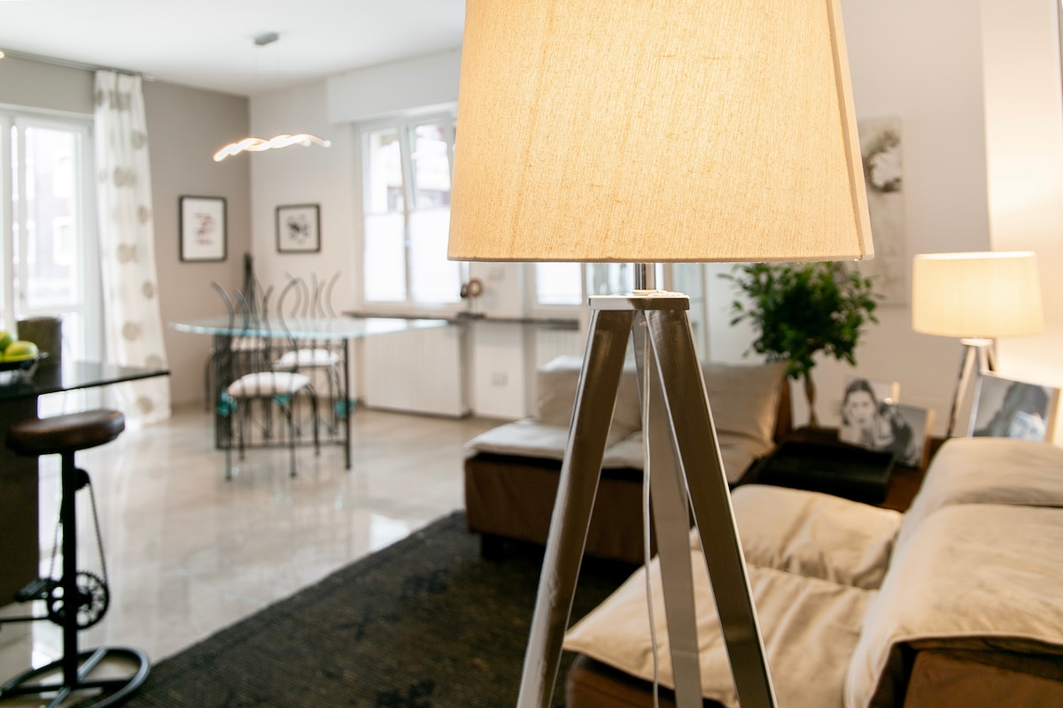 Questo elegante alloggio nuovo è perfetto per viaggi di coppia. Per chi desidera vivere le ore di riposo in un ambiente molto curato e realizzato con materiali e gusto Italiano . Lenzuola in percalle su misura, materassi lunghi 2mt. e topper comodissimi ,letto matrimoniale o due singoli , terrazzo per rilassarsi sui lettini o per fare attività sui tappetini. Ma anche uno spazio dedicato a chi deve lavorare un pò. E per chi desidera parcheggiare in sicurezza nel garage privato i propri veicoli.