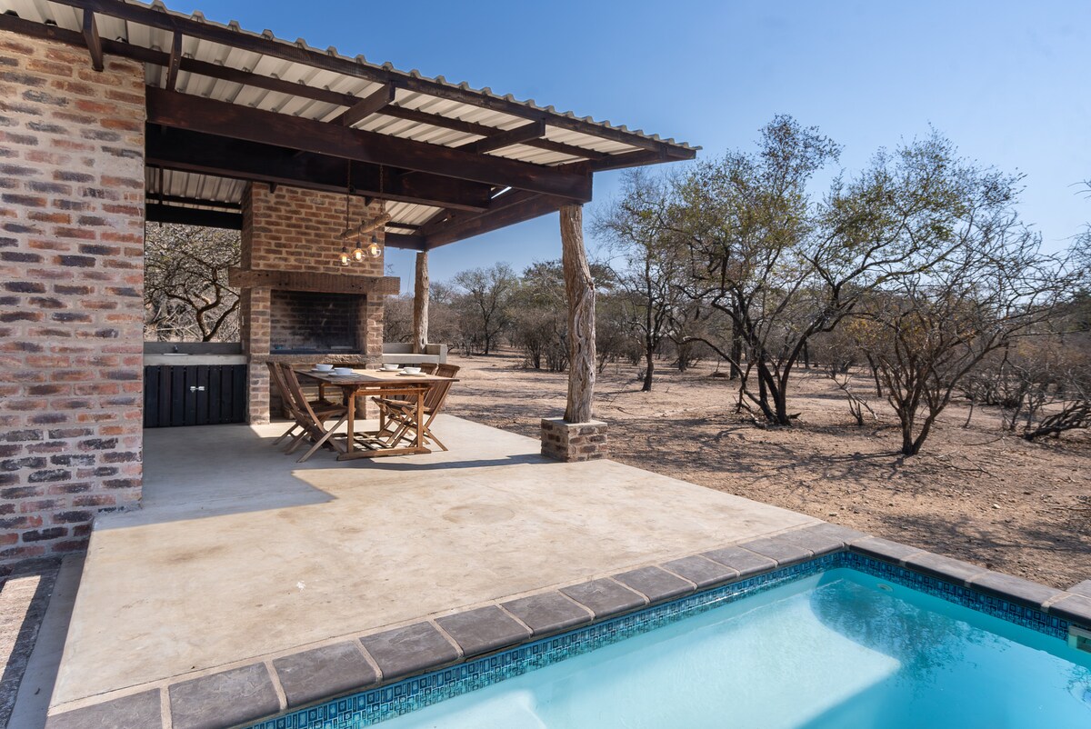 Terminada en 2023, esta pequeña casa de campo es un espacio muy especial de planta abierta, independiente, situado en un santuario de vida silvestre a unos 14 km de la entrada de Kruger. Es un poco de lujo con una piscina de 3 m x 3 m 'lo suficientemente profunda como para saltar'. Relájate en el patio elevado rodeado de árboles o siéntate dentro con la enorme puerta corrediza abierta y observa a los animales salvajes que visitan: kudú, cebra, jirafa, impala, jabalí, por nombrar algunos, deambulan libremente. ¡O simplemente ven para una escapada romántica!
