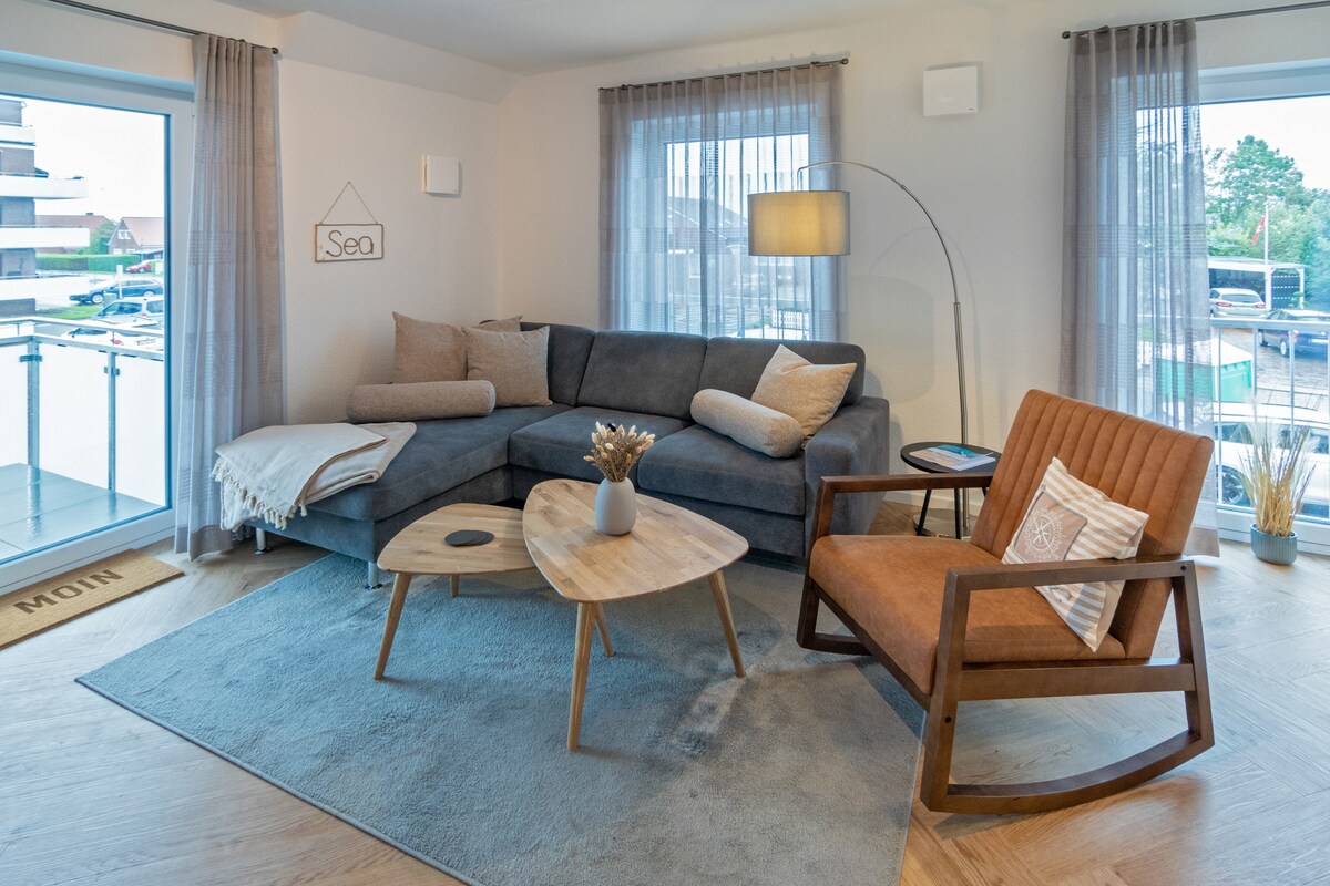 Experimenta el encanto marítimo y la comodidad moderna en un elegante apartamento vacacional en el edificio de oficinas anunciado de 1880, directamente en el puerto pesquero de Neuharlingersiel. Disfruta de la fantástica vista sobre el puerto a la isla de Spiekeroog, una sauna hecha a medida, cómodas camas de somier y una cocina totalmente equipada. El apartamento ofrece una sala de estar/comedor abierta, dos dormitorios acogedores y un moderno baño con ducha, ¡perfecto para un descanso relajante en el mar norte!