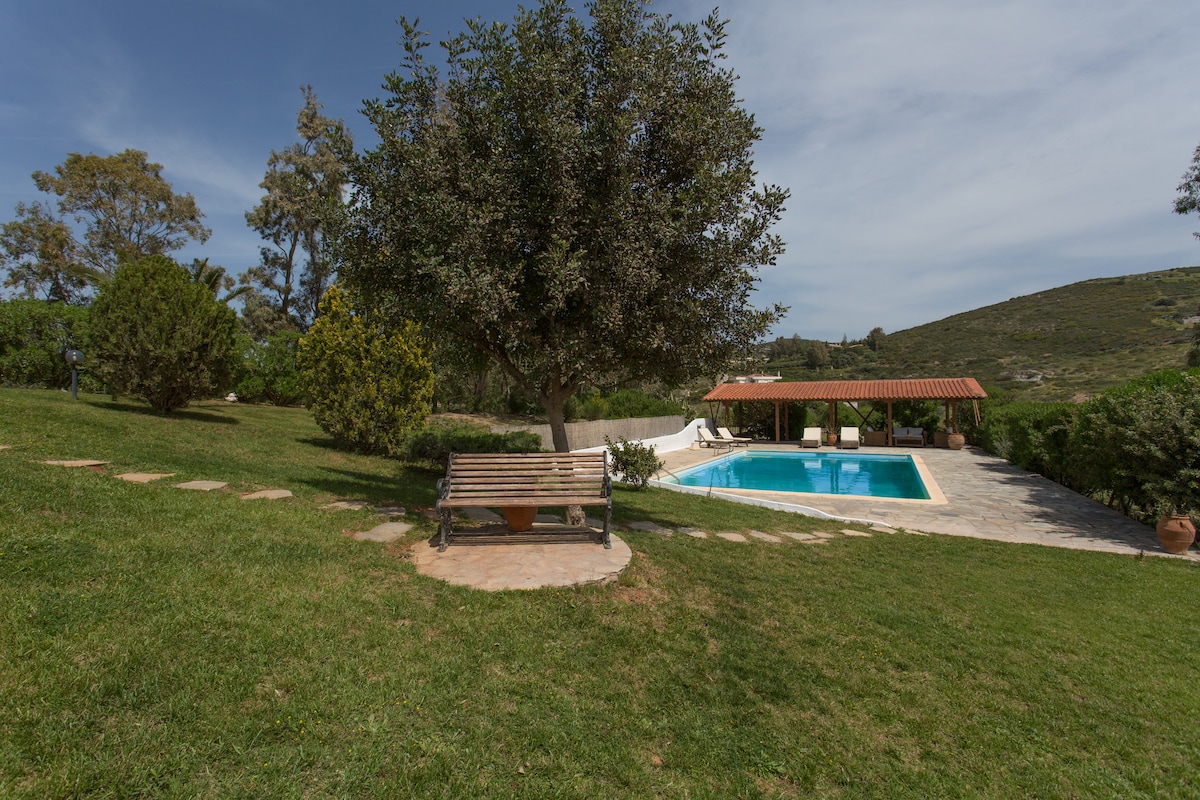 Vistas al mar Egeo, piscina, jardín y Vravrona
