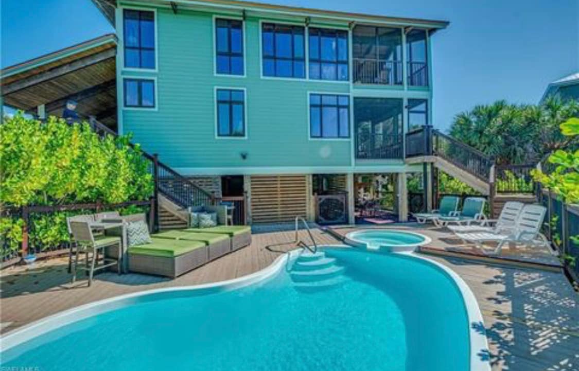 Esta acogedora vivienda de tres pisos, luminosa y totalmente equipada, cuenta con piscina privada climatizada y una terraza de observación en la azotea con impresionantes vistas panorámicas al mar. Ofrece tres cómodos dormitorios y tres baños completos para un máximo de seis huéspedes, además de dos lanais con mosquitero donde podrás relajarte con la brisa de la isla y escuchar a los pájaros. Se incluye un carrito de golf de cuatro plazas para que puedas explorar fácilmente las playas y los senderos de arena de la hermosa isla de North Captiva. ¡También tienen acceso total a los servicios del Island Club!