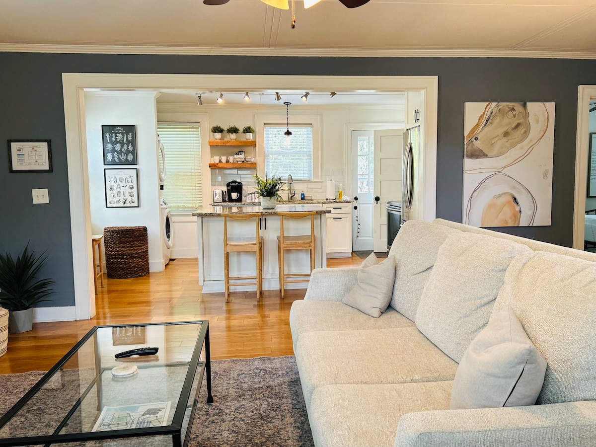 Bienvenido a tu elegante casa de 3 dormitorios y 2,5 baños a pocos pasos de todo lo que ofrece Park Circle. Disfruta de paseos en bicicleta al atardecer, paseos de 7 minutos a los mejores restaurantes/cervecerías y vistas al pantano desde tu porche trasero. Esta elegante casa viene equipada con una cocina totalmente abastecida, bicicletas, kayaks, sillas de playa, juegos, equipo para bebés, espacio para trabajar desde casa, lavadora/secadora, wifi de 400 Mbps, estacionamiento en garaje y mucho más. Vive como un habitante más en los barrios más codiciados de Charleston.