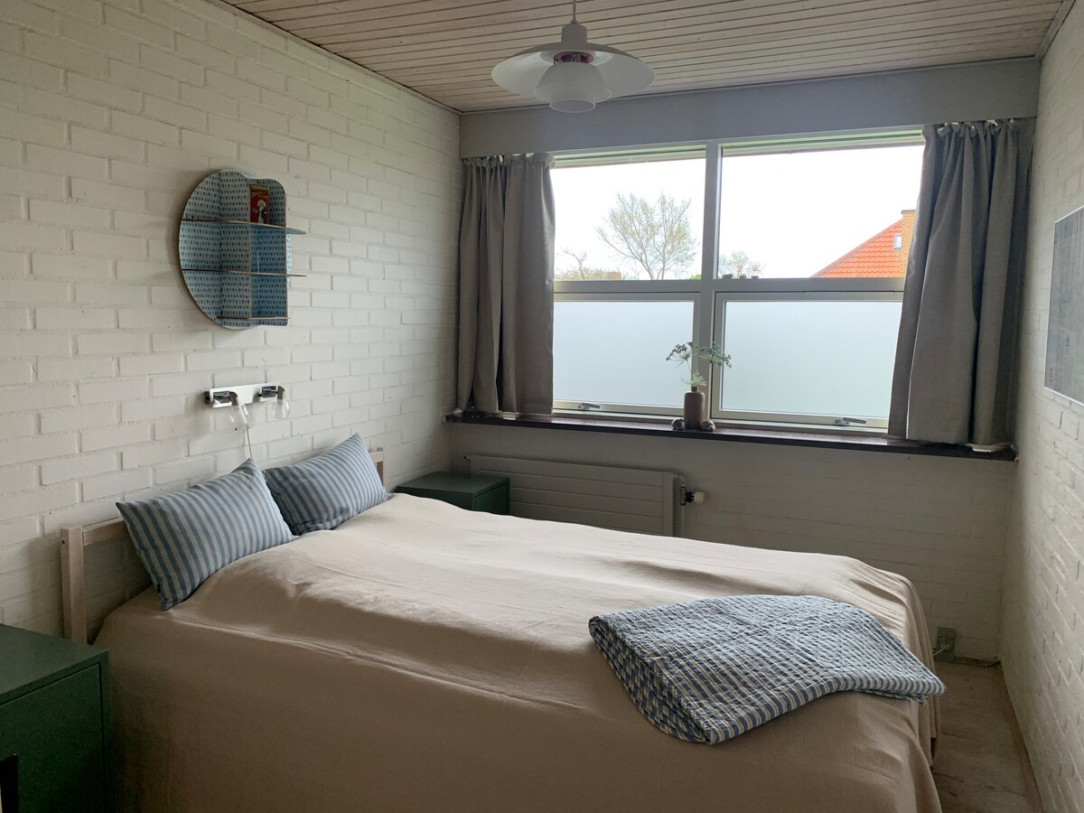 Anexo de 16 m2 en edificio separado en hermoso jardín en calle tranquila - perfecto para dos. Decorada con buen gusto con arte local y productos únicos de madera torneada. Cama cómoda (140x200 cm). Posibilidad de comprar desayuno. Cocina con hervidor de agua, café/té, microondas, nevera y servicio. El baño/aseo se comparte con el anfitrión y se encuentra en el sótano de la villa, a pocos pasos de distancia, con entrada independiente para los huéspedes. Cerca de la estación de tren, tiendas y restaurantes. Aproximadamente a 12 km del mar/playa. A 15 minutos en coche de Hirtshals.