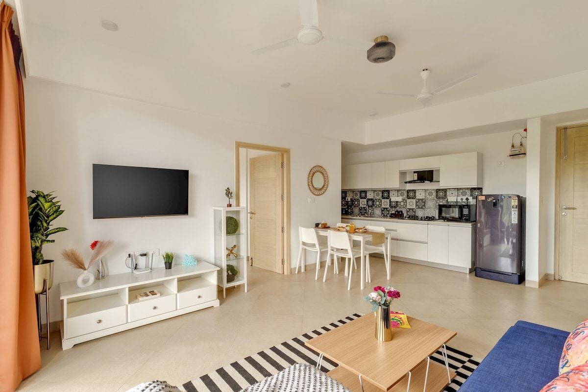 ¡✨🌴 Bienvenido a casa! en el apartamento Jade - 236. 🏖️🌊 ✨ Lo que te va a encantar ✨ ✅ Ubicación – Acron Sea Winds Distancia aproximada en auto: 📍 A 5 minutos: Playa de Calangute 📍 A 7 minutos: Playa de Baga 📍 A 15 minutos: Playa de Anjuna ✅ Tamaño del penthouse: 810,74 pies cuadrados Techo ✅ de doble altura en el penthouse: una característica rara y excepcional. ✅ Altavoces, libros y juegos de mesa Balcón ✅ romántico envolvente con vista al campo. ✅ 1 Estacionamiento exclusivo Seguridad ✅ 24 x 7 ✅ Servicio de limpieza gratuito ✅ 2 piscinas de tamaño olímpico y 1 piscina para bebés/gimnasio