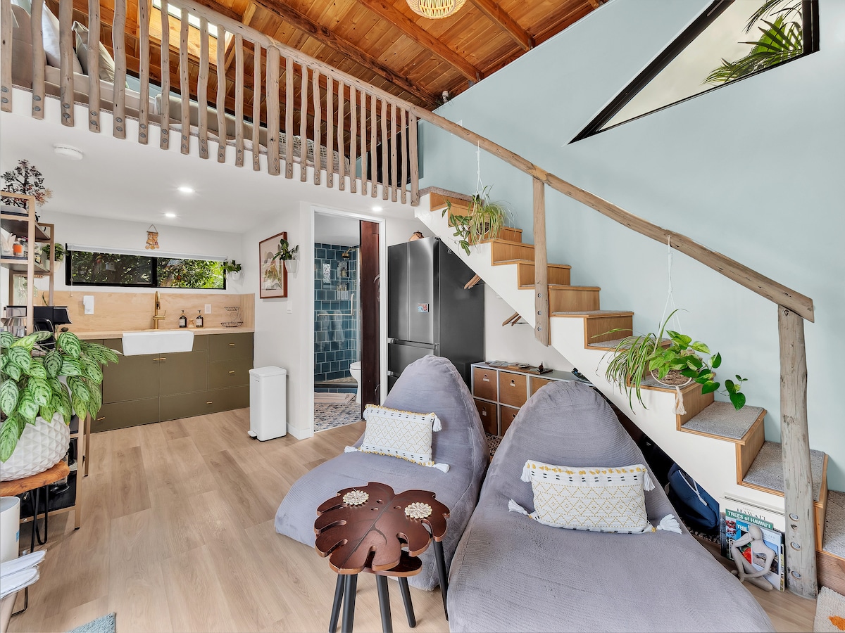 Alójate en un bosque nuboso único a 2500 pies de altura, pero a pocos minutos del aeropuerto, playas, restaurantes, bares y tiendas. Alojamiento extraordinario, perfecto para una luna de miel, un retiro de escritores o unas vacaciones de meditación. Rodeado de bosque nativo, con helechos de árbol y aves cantoras hawaianas. Las lluvias de la tarde terminan en grandes puestas de sol. Las noches son frescas para dormir con las ventanas abiertas. Las rutas de senderismo por el bosque estatal están a la vuelta de la esquina. ¡Gran observación de aves, incluida una bandada local de cacatúas que visitan por la mañana!