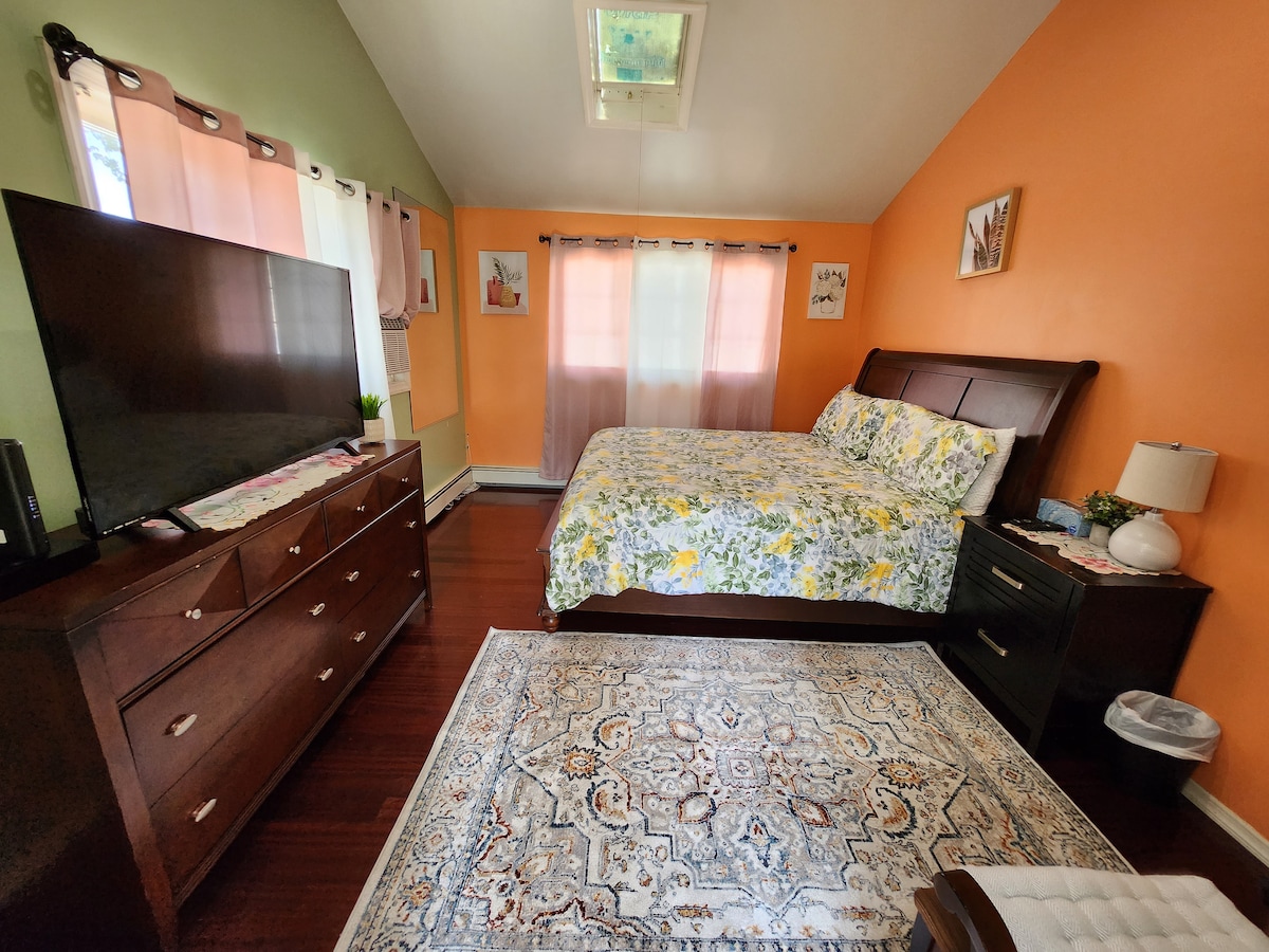 This upstairs studio is in the heart of Long Island. You will find towels, sheets, a full kitchen with dishes and cutlery. The refrigerator unit has a full sized freezer and fridge. The oven is electric and full sized as well. There is a desk area with Wi-Fi. I have Verizon service. It also has a Vizio smart TV. There is free street parking. Quiet hours are from 10pm until 7am. Loud footsteps and television, running, jumping and conversations disturb my guests below.