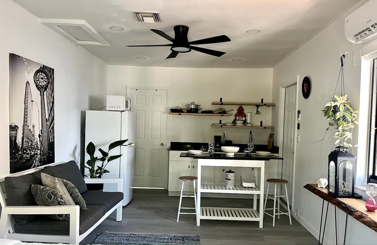 Relájate en este espacio tranquilo y elegante. Hemos creado un encantador apartamento sensual en una ubicación muy céntrica. Totalmente amueblado con una lujosa cama tamaño king en el dormitorio, Wi-Fi, cocina equipada y ropa de cama. Estacionamiento designado, todo en un barrio seguro y tranquilo. Servicio de lavandería en la parte trasera del edificio y es gratuito para los huéspedes. Tarifa única de $ 50 por persona.
