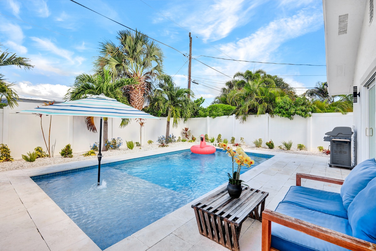 Oasis 🌴 privado a 3 minutos de la playa de Vanderbilt 🌊 ¡Bienvenido a nuestro trozo de paraíso en Naples Park, Florida! Ubicado a 3 minutos de las prístinas arenas de Naples Beach, las mundialmente famosas tiendas y restaurantes Mercato y Publix/Walmart. A solo 15 minutos al norte de la 5 .ª Ave Downtown District. Nuestra casa renovada cuenta con un patio trasero privado vallado con una nueva piscina climatizada de agua salada, una zona de minigolf personalizada y muchos juegos al aire libre para cada huésped. ❤️ Simplemente, el refugio acogedor más perfecto para tu escapada a la playa.🏖️
