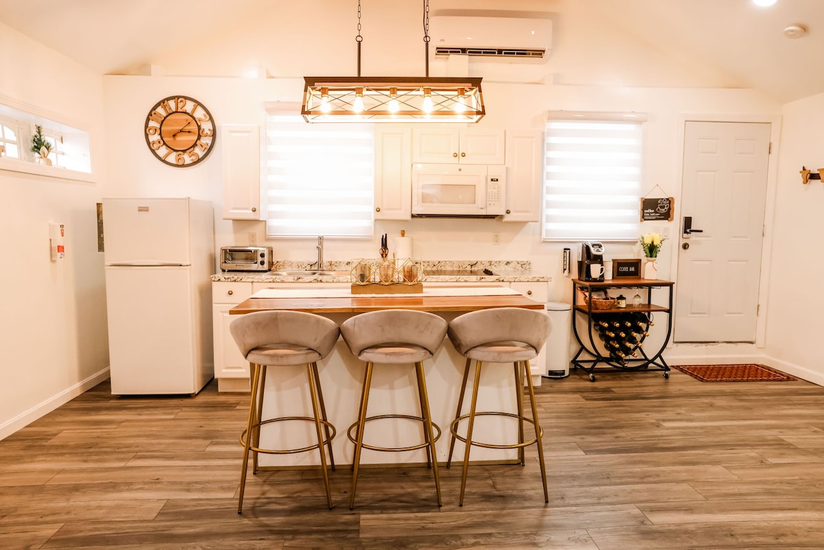 Las cosas buenas definitivamente vienen en paquetes pequeños, aptos para mascotas y respetuosos con el medio ambiente. La mejora solar hace que esta casa de campo frente al lago sea 100 % energéticamente eficiente. Construida con un diseño abierto y cuidadoso que ofrece baño privado, lavadora/secadora, cocina completa, ropa de cama de lujo de suite de hotel y colchón Tempur-Pedic, wifi rápido y brillante, TV HD de 46 pulgadas (con Netflix, Sling, Prime y Plex), terraza privada con bonita vista al lago. Acogedora, encantadora y equipada con todo lo que podrías desear para unas vacaciones perfectas o una escapada cerca de casa.