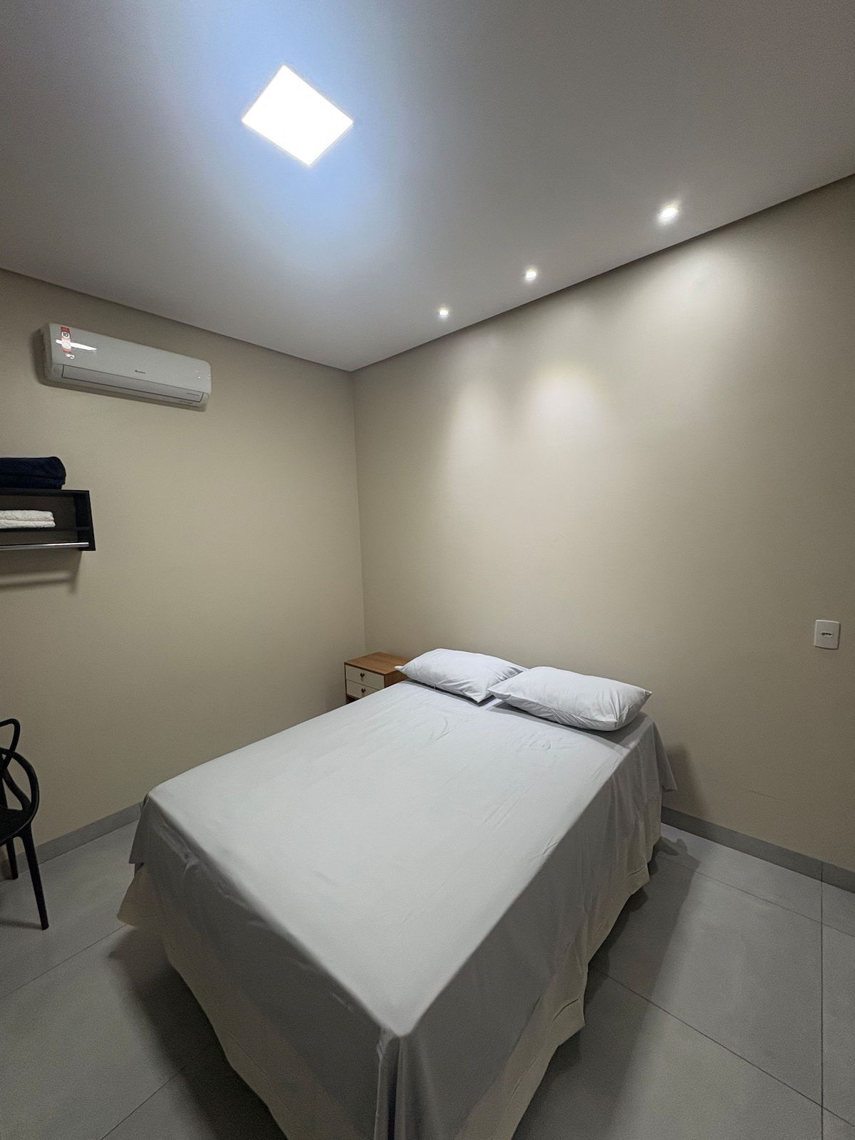 Abraza la sencillez en este lugar tranquilo y bien ubicado. Kit Net amueblado, lugar tranquilo, ventilado, limpio, familiar, con aire acondicionado, wi fi, tv, cama de matrimonio, colchón individual, mesa de comedor, mesa de centro, sofá, nevera, cocina, ropa de cama y toallas, utensilios domésticos, etc.