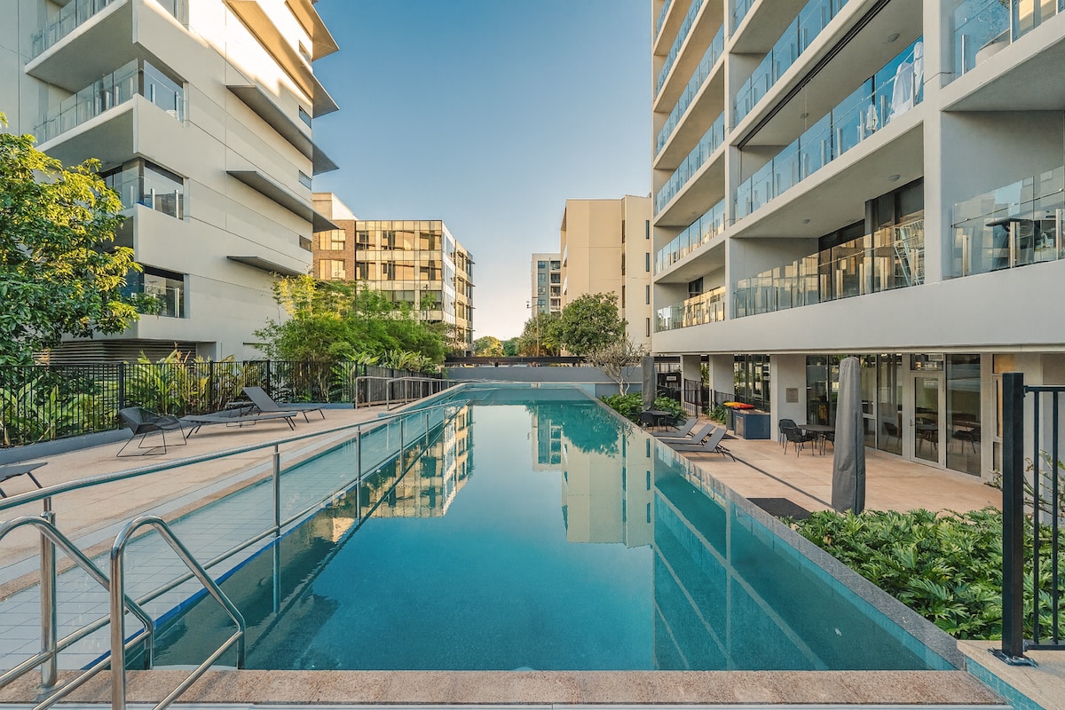 Te damos la bienvenida a nuestro elegante apartamento de 2 dormitorios y 2 baños en un centro vacacional de cinco estrellas en Hamilton, Brisbane. Disfruta de las vistas al jardín y a la barbacoa, una piscina, estacionamiento gratuito, parques infantiles y un paseo por el río. A pocos pasos de cafés, tiendas, cines y mercados, y a solo 10 minutos del aeropuerto. A minutos del distrito financiero y las principales atracciones, perfecto para una escapada corta o una estancia prolongada con instalaciones premium.
