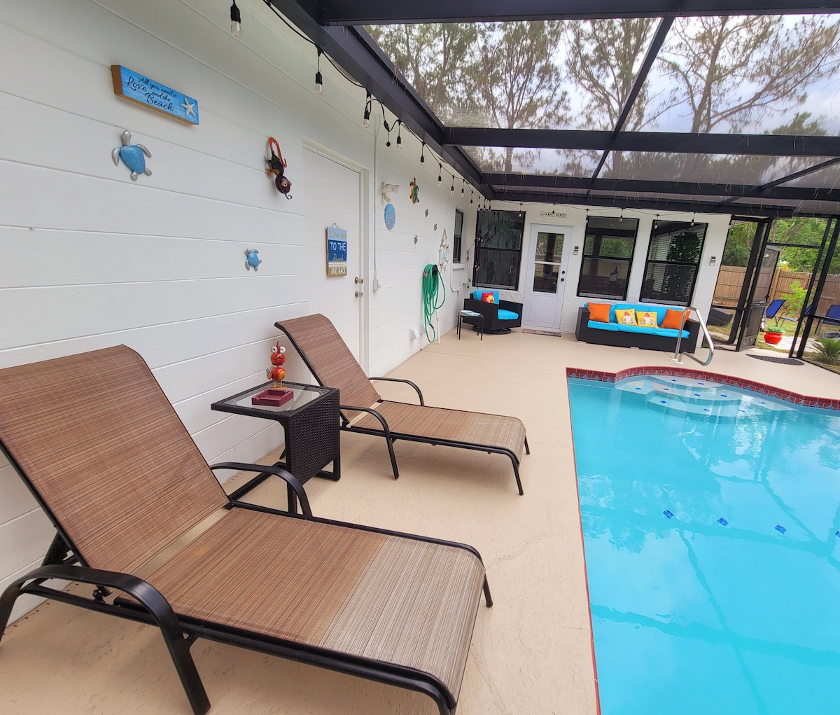 The Retreat sleeps 4 guest comfortably. Our 2 bedroom, 2 bathroom home features a pool with a waterfall and fenced backyard. This quaint paradise will make you feel relaxed sitting by the pool enjoying a good book with a drink while you can hear the breeze going through the palms in the backyard. It’s located on a quiet street. But minutes away from different beaches, golf courses, shops and restaurants, attractions and parks.Something to do for the whole family.