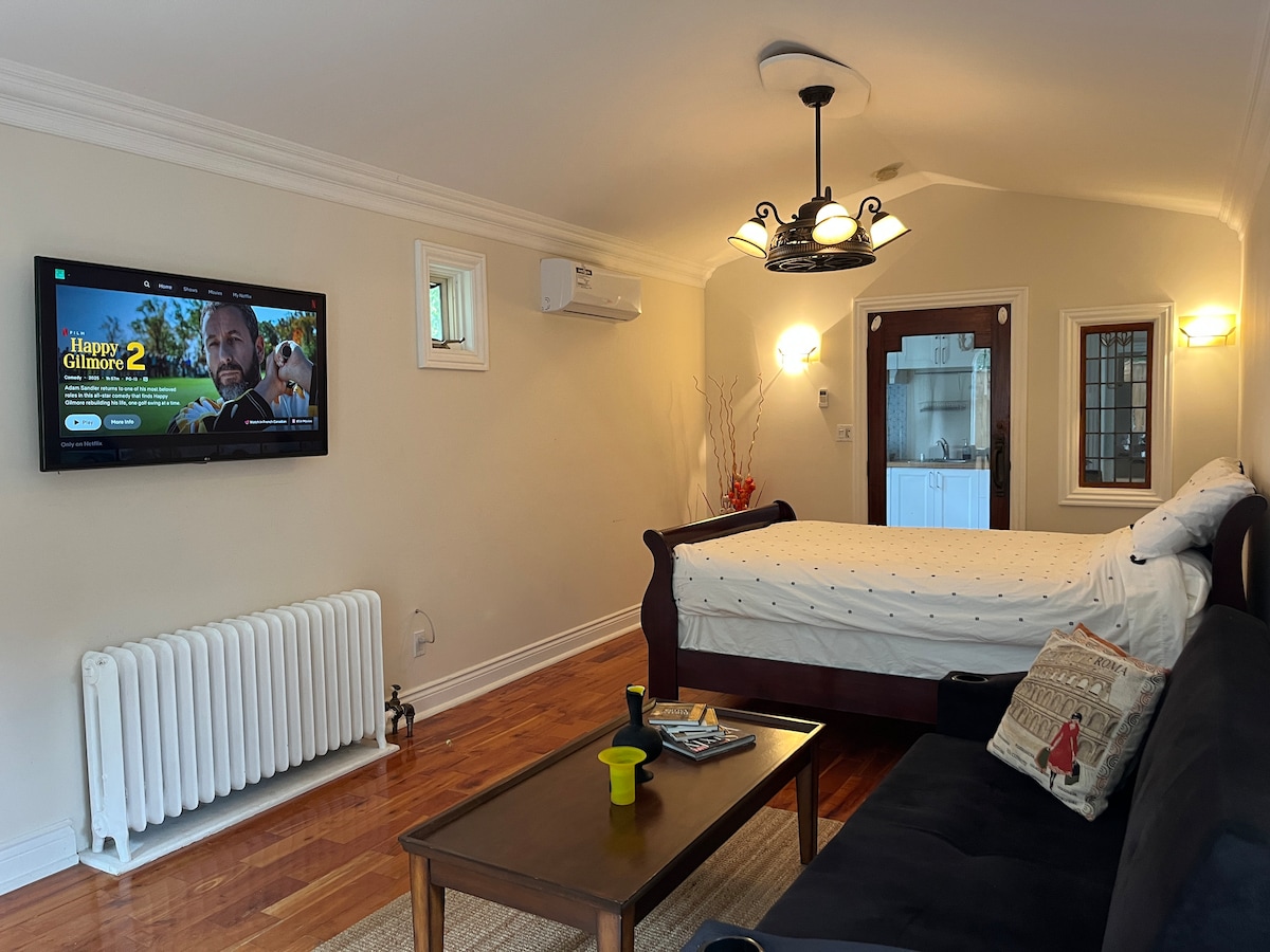 Una suite privada de 1 dormitorio y 1 baño recién renovada ubicada en el Anexo Oeste de Toronto, a solo 3 minutos a pie del metro y los autobuses. Luminoso, tranquilo y cuidadosamente diseñado, este espacio independiente es ideal para viajeros solos, parejas o estancias de negocios cortas. Disfruta de suelos con calefacción, agua caliente ilimitada, conexión Wi-Fi rápida, una cocina completa y cómodas áreas de estar y comedor, a pocos pasos de restaurantes, parques, tiendas y hermosas calles residenciales.