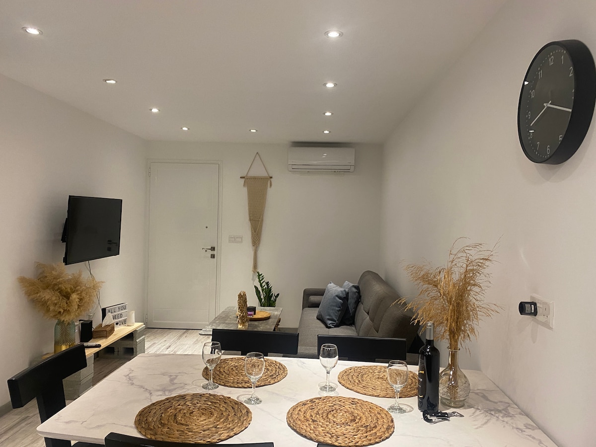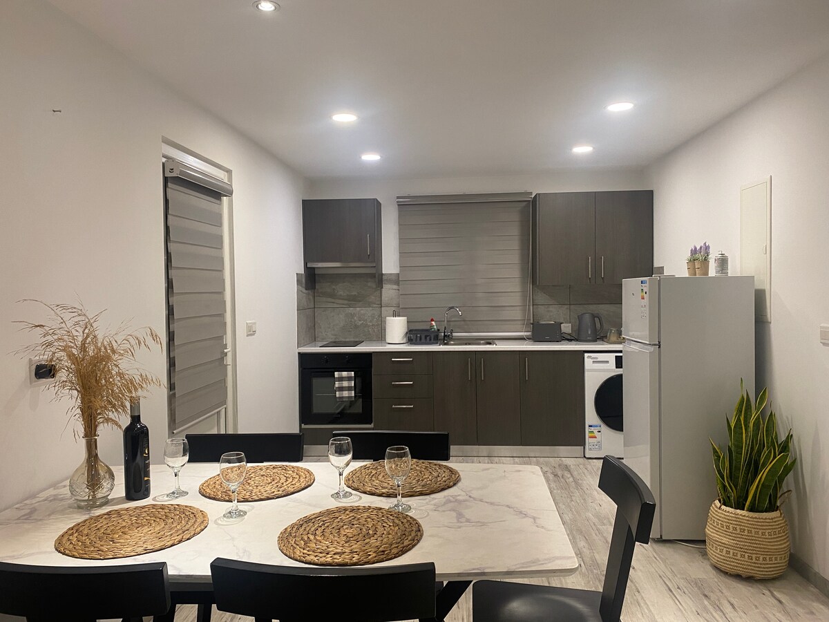 Nuestra moderna casa en Ozanköy, Girne, se encuentra en una zona tranquila entre olivos, en una propiedad de 1,5 dönüm (0,37 acres), a solo 3,5 km (2 millas) del centro de la ciudad. Cuenta con 1 dormitorio, una amplia sala de estar, una cocina totalmente equipada, una ducha y 2 baños. Espacio para 2 adultos y 2 niños (sofá cama o cama plegable). Ideal para unas relajantes vacaciones en la naturaleza, con vistas a las montañas y al mar, en un pueblo chipriota tradicional. Perfecto para familias y amantes de la naturaleza.