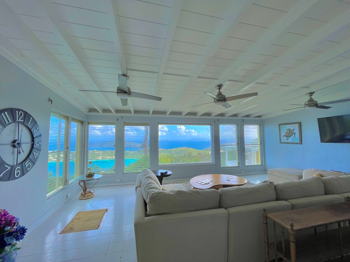 ¡Relájate con el sonido de las olas del mar en tu paraíso privado con vistas panorámicas! Este alojamiento independiente cuenta con 2 camas tamaño king nuevas, 2 camas completas nuevas, 2 sofás individuales nuevos, dormitorios con aire acondicionado, cocina de chef con estufa de gas y wifi rápido y generador de reserva. ¡Espacios llenos de brisa abiertos a impresionantes vistas que se extienden hasta St John! SUV de 7 asientos para aventuras inolvidables en la isla. Apto para niños, perfecto para familias. Aparcamiento fácil + ubicación privada tranquila. ¡Un valor increíble súper céntrico!