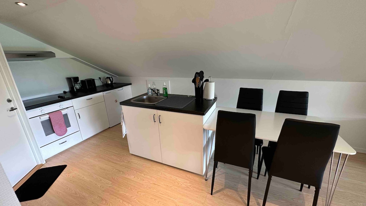 Comience su próxima aventura en nuestro pintoresco departamento en la azotea de 3 habitaciones en el corazón de la ciudad. Aquí te recibirán con increíbles vistas de Kristiansund. Está totalmente equipado para ser tu hogar lejos de casa. La cocina está totalmente equipada con electrodomésticos y todo lo necesario para el café cada mañana! Disfrute de sus comidas juntos alrededor de la mesa del comedor, o relájese en el cómodo espacio que incluye un televisor de pantalla plana. Aparcamiento privado gratuito 1 se encuentra detrás del edificio. Esperamos verte pronto.