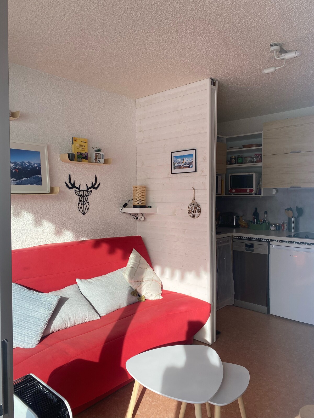 Apartamento al pie de las pistas de 35 m2 totalmente equipado en el centro del pueblo. Una cocina equipada con zona de comedor, baño con ducha e inodoro. Dos habitaciones cerradas: 1 cama para 2 personas + un sofá cama (2 camas individuales nido). Aparcamiento privado, jardín cerrado, vistas al Mont Charvin . Zona de relax en el jardín; barbacoa,sillas y mesa .